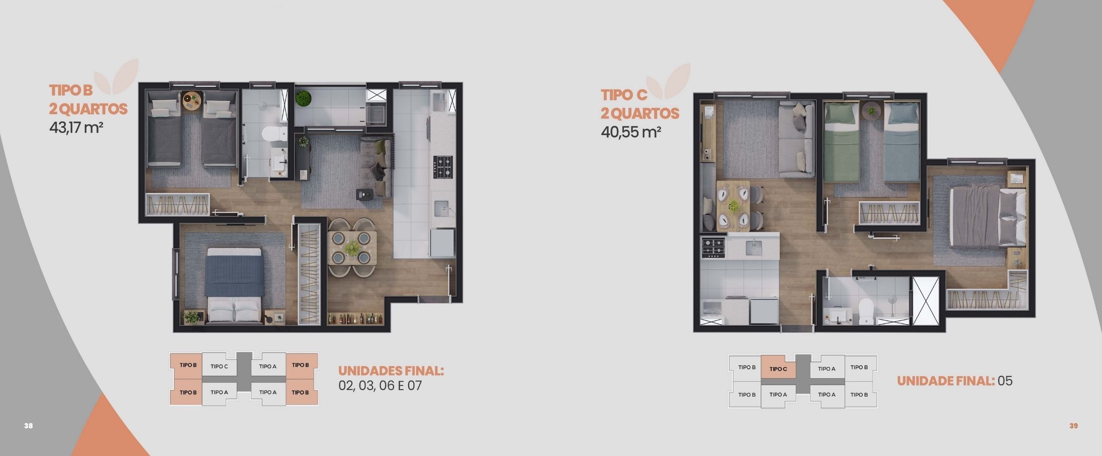 🚪 Apartamentos de 2 dormitórios – com e sem sacada